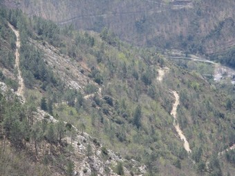 la Corniche des Cévennes, ancienne "route des Gabales", et au couchant, par la très ancienne draille d'Aire de Côte, chemin des moutons et des hommes.