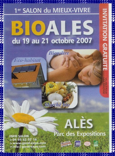 En dehors des stands de produits biologiques (vins, miel, chocolat, huiles, crèmes) on y traite aussi l’art du mieux vivre : décodage des pathologies en bioénergétique ; atelier d’initiation au Shiatsu, massage, énergie et conscience corporelle, initiation à un kata de pratique douce et de méditation